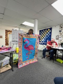 | Leanna sharing information about Quiltfest which will be in August this year. |